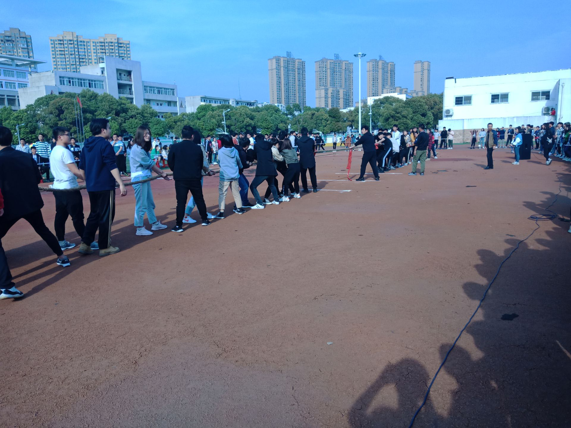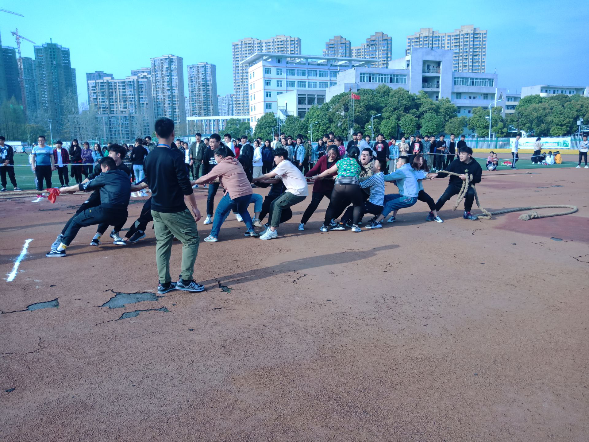 众人拾柴火焰高,众人划桨开大船。拔河比赛尤为考验一个团队的协作能力,劲往一处使,心往一处想,才能有最大的战斗力。在本次拔河比赛中,各支队伍都发挥了集体的作用,在赛场上看到了一幕幕齐心协力,团结一致的场面。值得我们为他们加油呐喊。