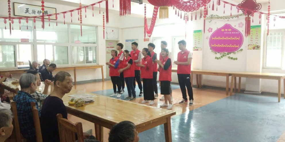 这些朝气蓬勃的志愿者都是大一、大二的学生, 他们有计划的为老人表演一个又一个的节目。 表演结束后, 他们在总结环节各抒己见, 畅谈了未来的生活。