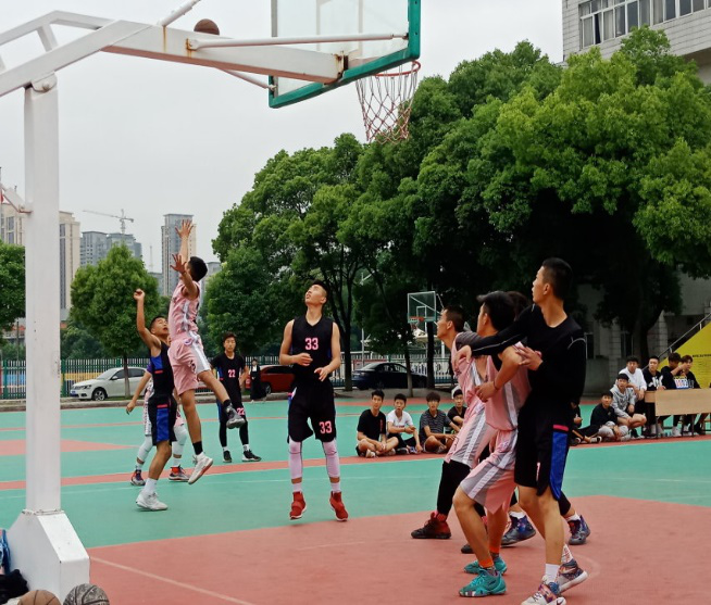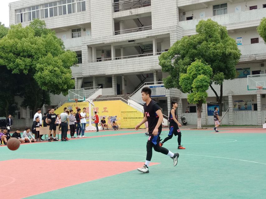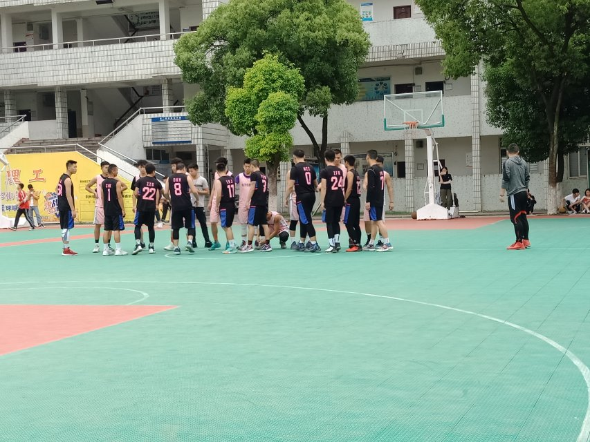 学校的篮球运动场上准时举行了建筑与环境工程学院与电子信息学院的篮球友谊赛,在篮球比赛还没开始时,双方球员已经来到运动场热身啦!