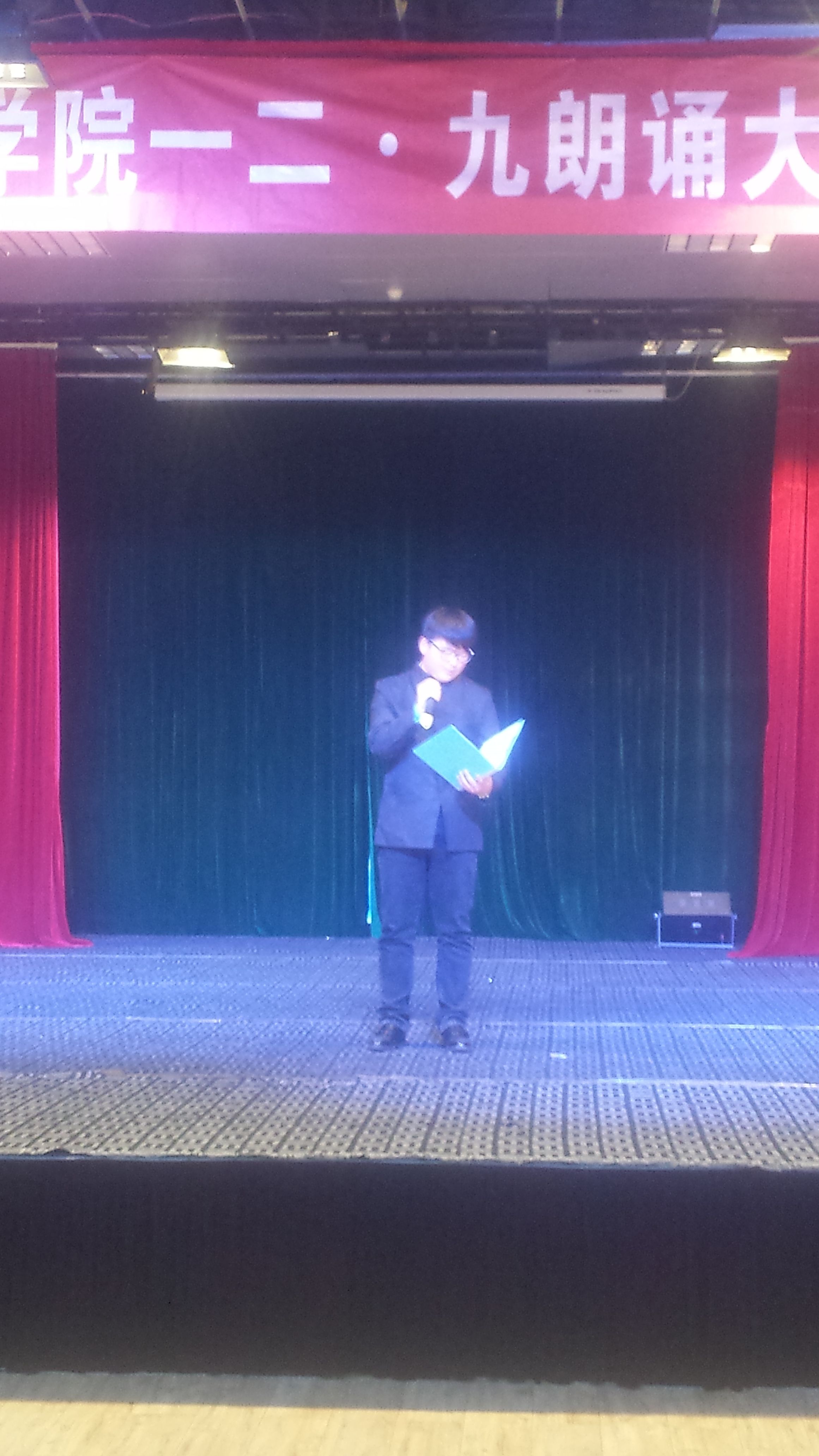 比赛伊始,主持人向在场同学们介绍本次活动的意义。随后各系代表队上台进行朗诵表演,各位选手的朗诵慷慨激昂,深情并茂。同学们庄严的神情抒发了对祖国历史的缅怀之情,饱满的热情更是有力的表达了对祖国美好未来的期待。随后由学院领导老师们为本次胜出的队伍颁奖。