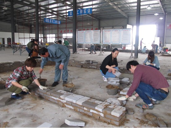 我校建筑实训基地的投入使用,是我系广大师生的福音,它让我系学生可以在校内参加建筑物的实际施工,了解各个分部分项工程的施工工艺和施工方法。本次实训的主要内容是砌筑工的实训,在课程的现场参与环节中,