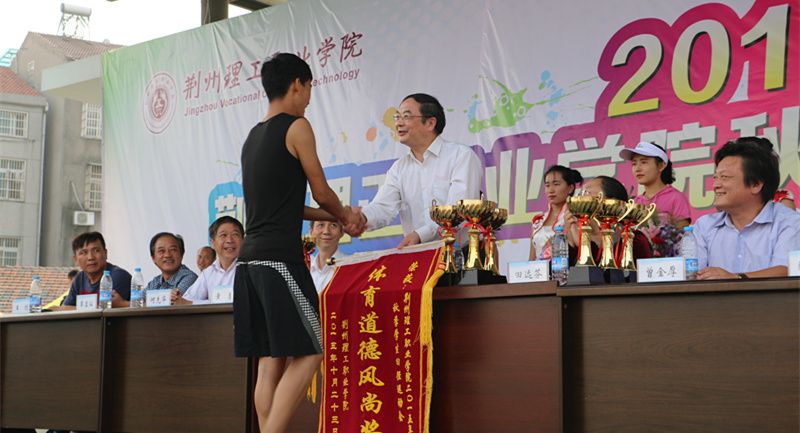青春的激情在赛道上尽情挥洒,胜利的歌声在田径场上欢快飘扬。经过两天的激烈角逐,10月23日下午,学院2015年运动会闭幕式在校田径场举行。院党委副书记黄永平、纪委书记黄勇、副院长田远芬、副院长龚恒及各系党支部书记出席了闭幕式。闭幕式由学生工作处处长王剑主持。