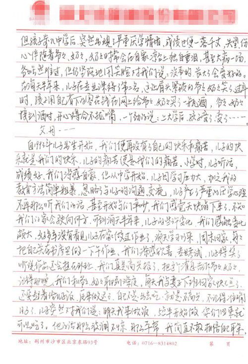 陈有为同学家长的来信