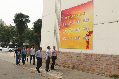 10月10日市文明办检查组在市教育体育局领导的陪同下到我院检查"百佳庭院"示范点创建工作。 检查组董军涛主任一行在纪委书记黄勇的陪同下详细了解和实地察看了校内核心价值观公益广告的宣传情况、学校志愿者队伍建设及开展活动情况、文明礼仪知识学习情况以及开展文明单位创建情况。我院的创建工作得到了检查组的好评。