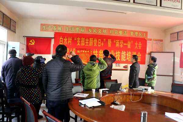 在白水村党员群众活动中心,在白水村党支部书记凡白春的主持下,驻村工作队党员和白水村所有党员一起重温入党誓词,再次向党宣誓。一句句铿锵有力的誓词,让党员们深深感受到党员的责任、使命、荣耀。
