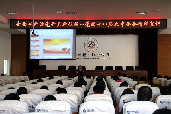 我校举办党的十八届六中全会精神宣讲 副校长田远芬作专题辅导报告