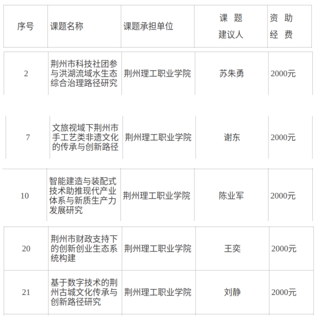 5月20日,荆州市科学技术协会公布2024年荆州市科技创新智库立项研究课题
