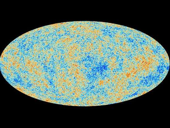 这幅图根据欧航局2009年发射的"普朗克"探测器在头15个半月内收集的数据绘制而成,比美国航天局此前发射的宇宙背景探索者(COBE)卫星和威尔金森微波各向异性探测器(WMAP)探测到的微波背景辐射更为精确,见证了宇宙诞生38万年后的情形。