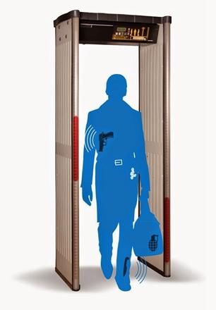 安检门探测到身体上的金属后会闪光