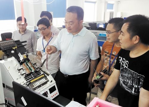 经过9年时间发展,景嘉微电子目前已拥有一支300多人的IT"梦之队"。图为该公司董事长曾万辉(右三)与工作人员一起讨论技术难题。
