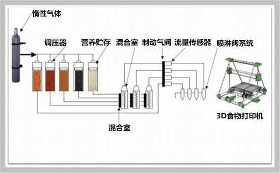 3D食物打印机是在3D打印技术的基础上发展起来的一种快速成型的食品制造设备。设备包括食品3D打印系统、操作控制平台和食物胶囊三大部分。