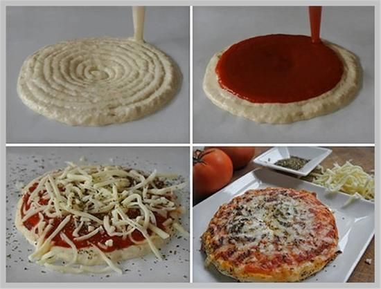 它的工作原理是这样的:第一层先将粉末糊和成面团,其被打印在炽热的铁板上,这样就可以立即对比萨的底层进行烧烤;然后与油混合后的蕃茄糊粉加在披萨面饼之上;最后再加上一层蛋白质,这样一张3D打印的披萨就出炉了。