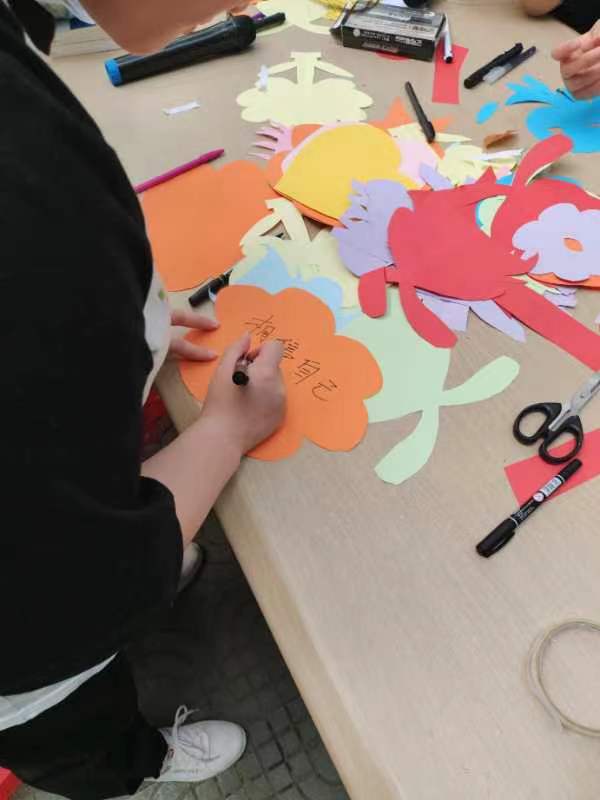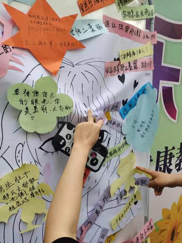 社会固有印象和标签。活动中,同学们认真看着贴满定义标签的展板,他们用力撕下展板上对性别定义的标签,并在便利贴上留下自己的心声或是鼓励的
