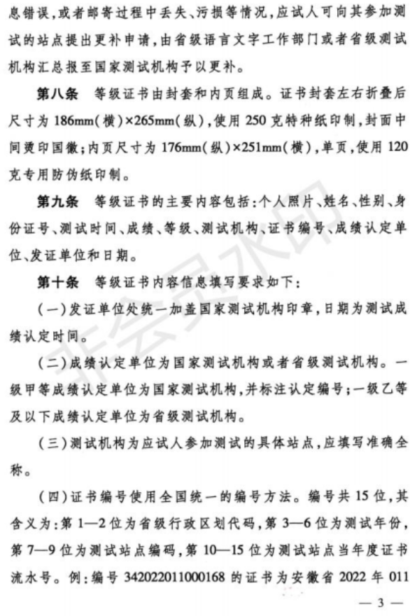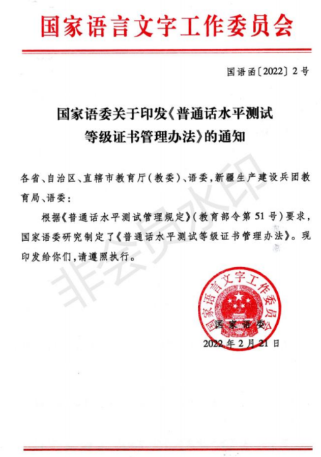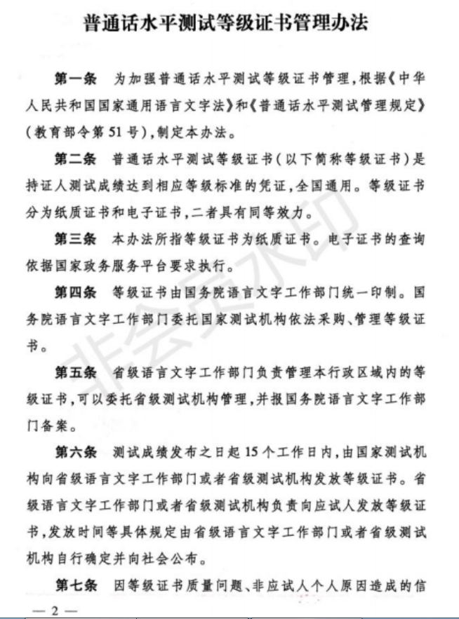 普通话水平测试等级证书管理办法