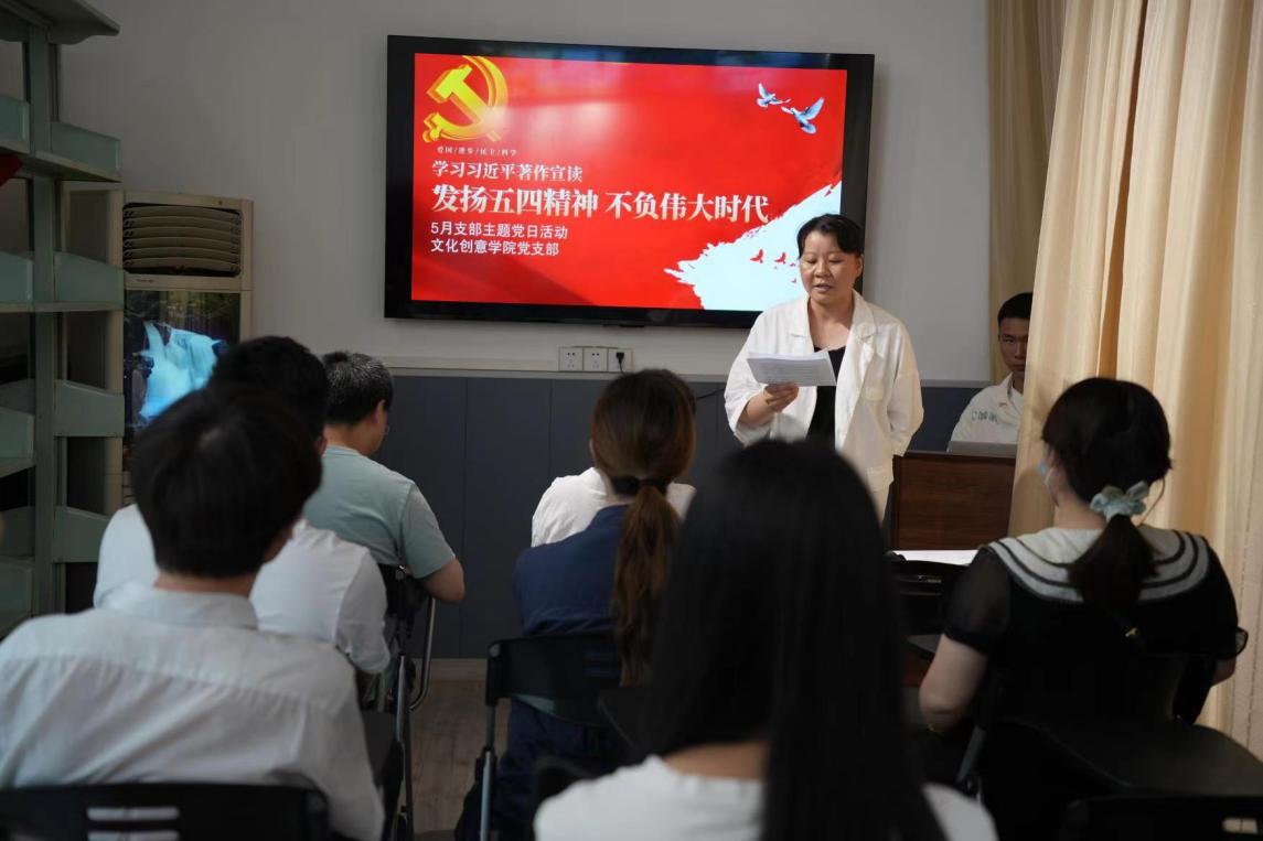 文化创意学院党支部于本周二下午开展了五月主题党日活动。支部书记谢东带领全体党员老师重温入党誓词、诵读党章党规,并提醒各位党员老师按时缴纳当月党费。