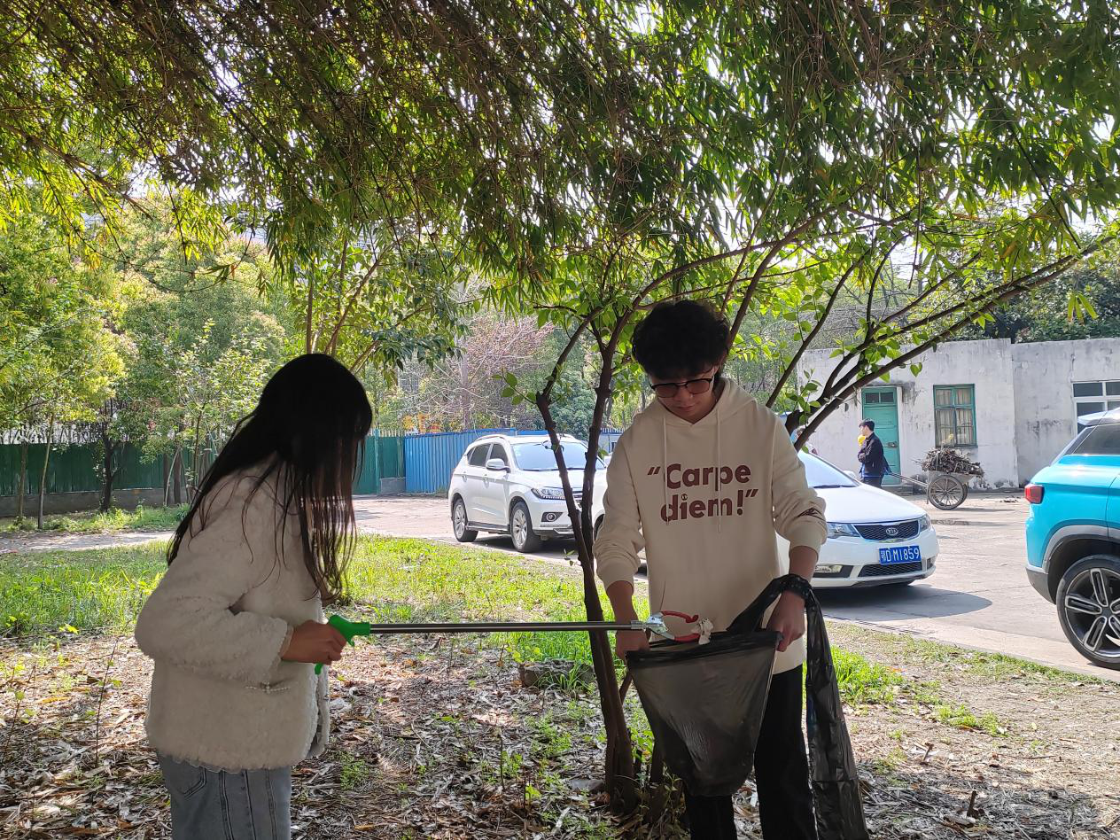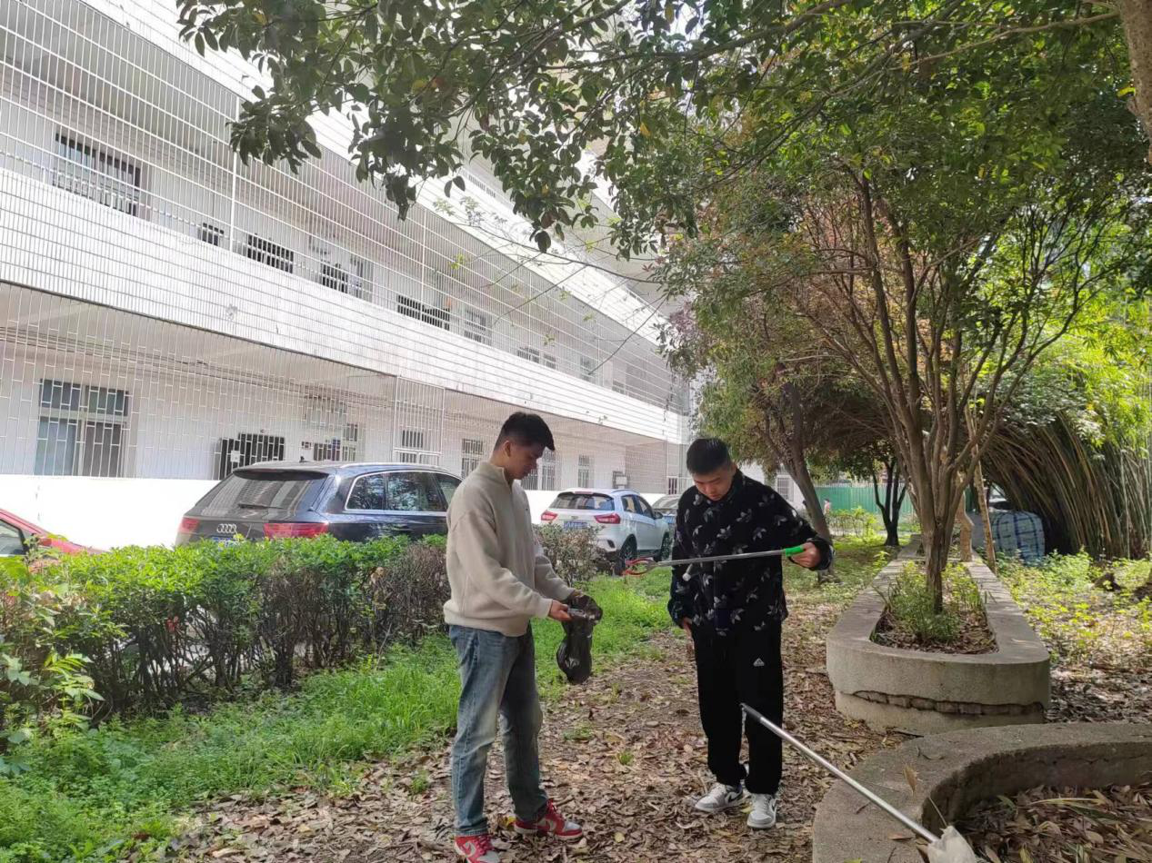 田书记组织校内志愿者环绕文创学院责任区打扫卫生,清理垃圾死角