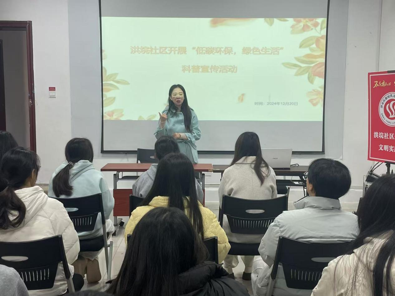 2024 年 11 月 26 日上午,我院 20 名志愿者满怀热情地奔赴洪垸社区新时代文明实践站,开展了"低碳环保,节约用水" 宣传活动。