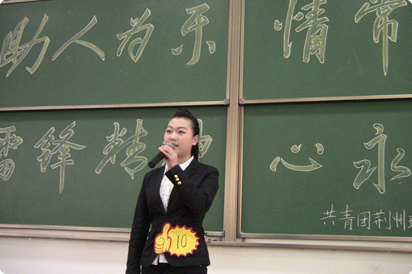 3月25日,荆州理工职业学院爱国主义读书教育活动暨"学雷锋、讲文明、比奉献"演讲比赛在学院阶梯教室举行。