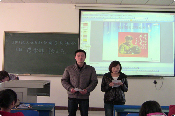 为推动"学雷锋"活动的深入持续开展,弘扬中华民族传统美德,引导广大学生积极投身学校的健康文明和谐校园文化建设,营造一种助人为乐的校园氛围。在院团委的安排下人文与社会科学系2011级全班开展了"学习雷锋,寻找身边的榜样"的主题班会,这将起到了良好的教育作用。