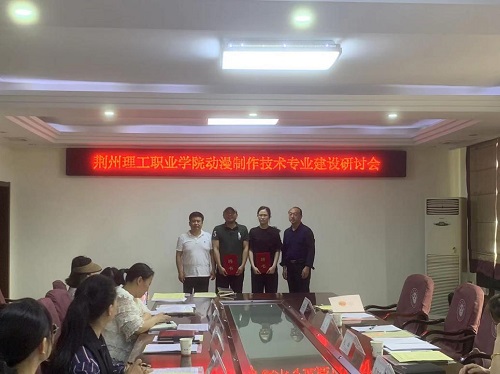 谢书记首先阐述了本次研讨会的目的,特别强调人才培养方案要与市场接轨,培养受企业欢迎的高质量人才。接着,谢书记为蓝鲸科技集团专家赵雄、吕萍颁发了动漫制作技术专业指导委员会校外专家的聘书。