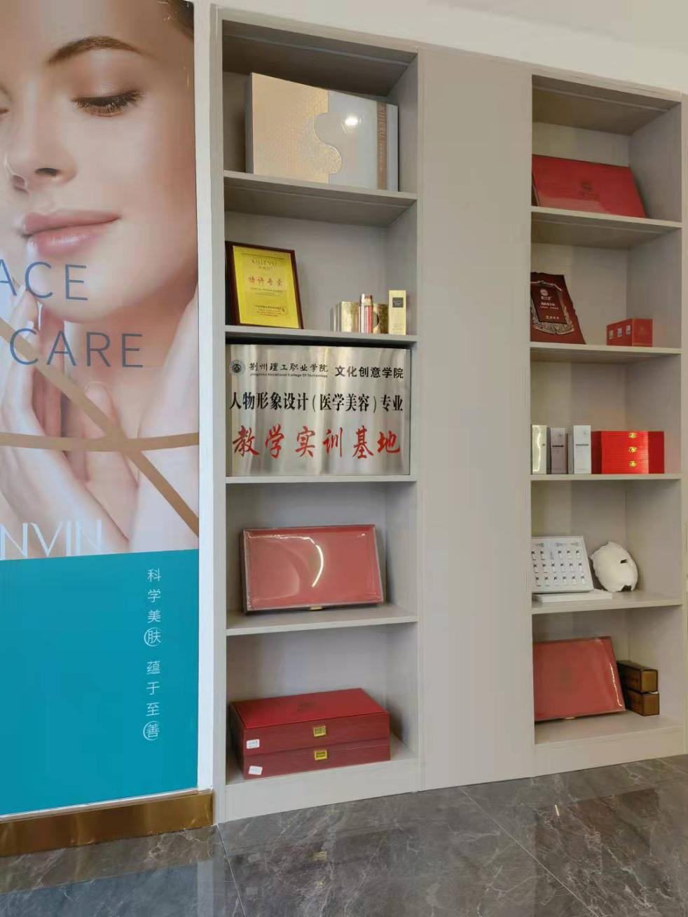 实训条件:本专业现有校内美容护肤实训室一间,本地校外美容护肤实训基地两所。