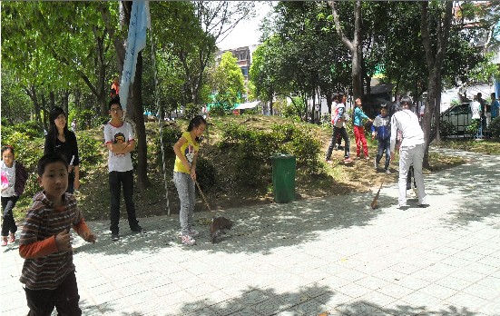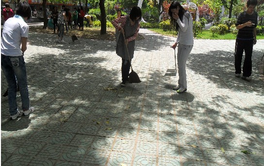 当天中午,我系入党积极分子们不畏天气的炎热,手拿扫帚、簸箕等劳动工具来到篮球场集合。12:30在大二学生干部的带领下准时出发,我系成员来到了洪垸小区,他们几人一组,分工明确,有的同学扫落叶、拔杂草,有的同学用铁锹挖石块,有的同学抬箩筐,还有的同学负责拍照记录,记录同学辛苦劳动的全过程。大家不怕累、不怕脏,虽然在烈日下汗流浃背,却都没有一句怨言。经过近一个小时的劳动,同学们终于将洪垸小区的垃圾、杂草等清理干净,小区干净又整洁。