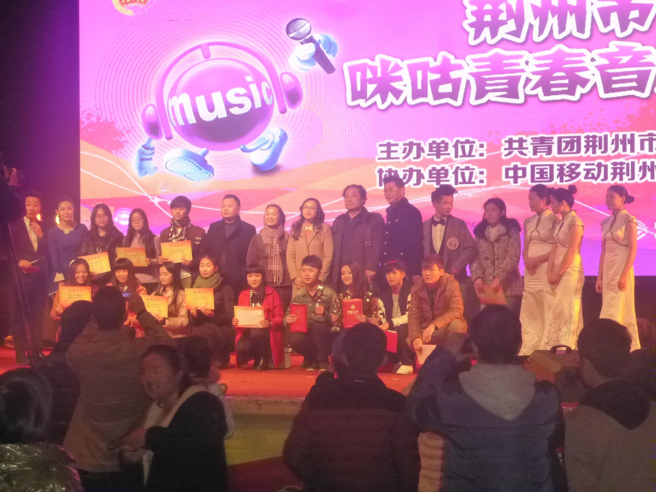 (本报记者黄荣娇报道)为了加强高校校园文化建设,丰富广大高校学生的文化生活,提高人文素养,展现奋发向上,奋斗成长的精神面貌,于2014年12月8日晚上,由中国移动荆州分公司联合共青团荆州市举办的一场基于大学生群体的音乐盛宴,在长江大学礼堂举行。到场嘉宾有中共荆州市委员副书记施政,长江大学党委书记常委、副校长张大平,长江大学党委委员、校长助理刘荣华,湖北移动荆州分公司总经理毛新平,共青团荆州市委书记王敏出席音乐节,并为获奖选手颁奖。