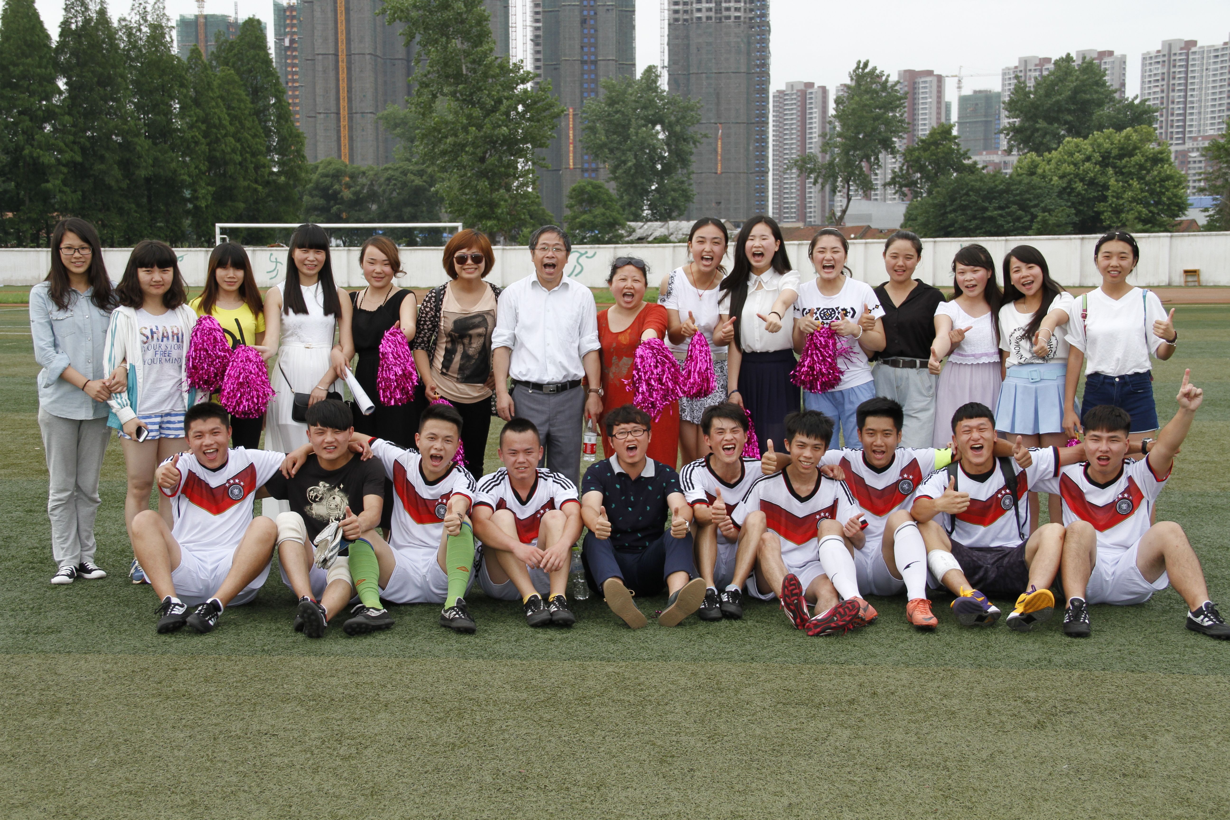 本报记者党蓉报道 为了增强学生凝聚力 加强学生交流促进各系部之间的友谊,培养和选拔一批优秀的足球队员,于6月5日下午15.50,有承办方院学生会协办的足球赛在我校足球场举行,到场领导有我系部何书记,詹书记及经济管理系老师,化学与建筑工程系老师。 足球决赛5日下午15.50准时开始,本场的裁判是机械系书记荆州市唯一一个国家级足球裁判吴叙敏,双方队友有序进场开始踢球,上半场中两支队伍踢的热火朝天,双方啦啦队也不甘示弱,我系何书记,詹书记也加入由我系戴双老师负责的啦啦队的队伍中,球员在竭尽全力的踢球,拉拉队在竭尽全力的呐喊,为我方队友加油助威。在大家助威的时候,突然谁都心悬一线,就在双方打得焦灼时 经济系的队长10号王开宇拿球后看见了在前场的谭宗宗 一脚精准的长传 越过了所有的防守球员 到达了谭宗宗的脚下 面对化建的守门员 7号谭宗宗冷静的一脚推射 球进了!全场在欢呼,啦啦队大喊大经管,加油!我方的第一球是由7号踢进。紧接着不一会儿我系又进球了,这时大家都在为场上的球员祝贺、高兴。大家在呐喊加油,在停下来的时候大家都在说,我们系真棒。听到同学们的认可。下半场时候化建系队友毫不示弱,但是我方队友更是毫不示弱,最后是以2:1的比分,经济管理系赢了。 虽然天气炎热,但不影响大家对比赛的渴望,比赛中,大家激情如火,奋勇先争。场边观众更是激情似火,大家的努力换来了最终的那份期待,当然在踢球的时候有快乐,也有失望,但这一切早已经不重要,重要的是大家在赛场的努力,团结的力量。 比赛结束,我方队友合影留念。对于比赛的结果大家都很满意,每个人在比赛中体会到了快意,不管比赛的输赢如何,最重要的是每个人都拥有了这样一段精彩刺激的回忆,大家在一起并肩奋战,有快乐也有不甘,有热情也有失意。那个人就是在这样一场场比赛中成长,队伍也在吸取经验不断发展强大,然后,迎接新的挑战。
