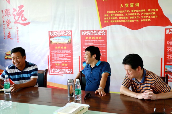 别校长一行在王家巷村村委会与村干部进行了座谈,了解了王家巷村当前的发展情况。村党支部书记熊宏清介绍了王家巷村精准扶贫、产业发展、在建项目、集体经济等基本情况。并从六个方面汇报了"五清一改"夏季战役的情况以及美丽乡村建设的工作思路,准备着重落实好规划编制、环境整治、修路、拆违、卫生等问题。