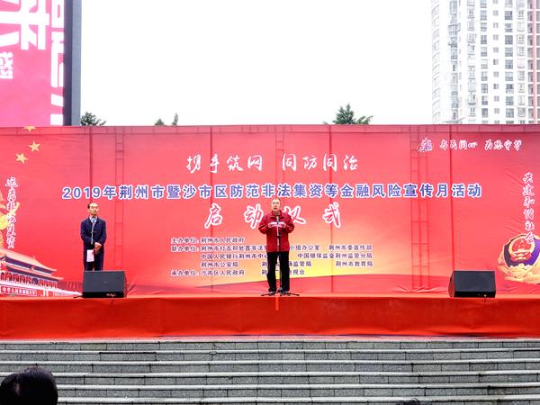 “携手筑网,同防同治”——我校参加2019年荆州市暨沙市区防范非法集资等金融风险宣传月启动仪式