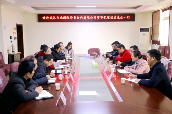 2月25日上午10时,荆州市贸促会副会长、外派中心主任申焰女士,武汉天地国际劳务合作有限公司总经理席德勇先生一行走进我校,开展项目对接洽谈工作,会议由副校长田远芬教授主持。教务处、职业技能鉴定所、实验实训中心、就业指导中心、电子信息学院、建筑与环境工程学院、商学院等部门主要领导参加会谈。