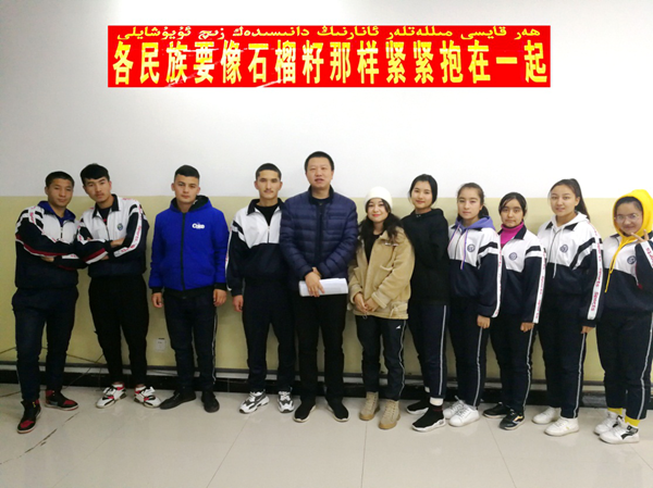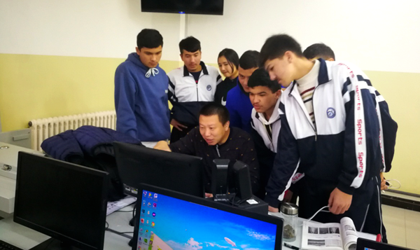 在援疆支教期间,盛教授认真完成教育教学工作之余,还深入到对口帮扶的班级,关心学生的学习和生活,鼓励学生在学好知识技能的同时培养良好的品德修养、 拓展知识见识。有些班级的学生来自少数民族地区,普通话基础差,文化课跟不上,听课吃力,盛教授利用休息时间对他们进行分组并开展"精准辅导"教学;有的知识或操作技能弱,盛老师总是不厌其烦地给这些学生讲上四五遍。