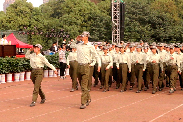 伴随庄严的升国旗、奏唱国歌仪式,结业典礼正式拉开帷幕。在雄壮的《分列式进行曲》伴奏中,各军训方阵依次通过检阅台。整齐肃穆的方阵、气势磅礴的口号、刚劲有力的摆臂、步调一致的踢腿,举手投足间,既透出军人坚毅果敢的气质,又彰显着新时代青年昂扬向上的精神风貌,赢得了主席台上各位领导和观礼台师生的阵阵掌声。