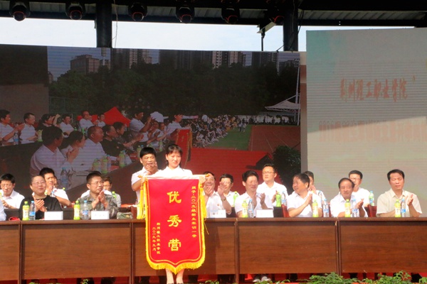 军训汇报表演结束后,校党委副书记黄永平同志宣读表彰文件。典礼表彰了一批2019年新生军事训练与国防教育工作优秀集体和个人;奖励了一批军训优秀营,军训优秀连队,军训优秀教官,优秀辅导员,优秀助教,优秀军训学员代表,市级师德标兵、优秀教师、优秀班主任获奖者,校级先进基层党组织,校级优秀党务工作者,校级优秀共产党员,以及诊改"说专业、说课程、说教师、说学生"获奖者。