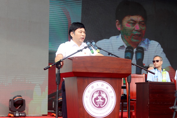 新生代表2019级会计专业于金正同学代表全体2019级新生发言。他表示,同学们将带着父母的嘱托、家庭的希望认真学习专业知识,在荆州理工职业学院的优良校风环境里、在全体老师的殷殷教诲里奋进拼搏,努力成长为一名优秀的职业型人才。教师代表、学工处副处长郭琼发言分享了她在荆州理工职业学院数年来的点滴,并为新同学们送上了最热烈和真挚的祝福。