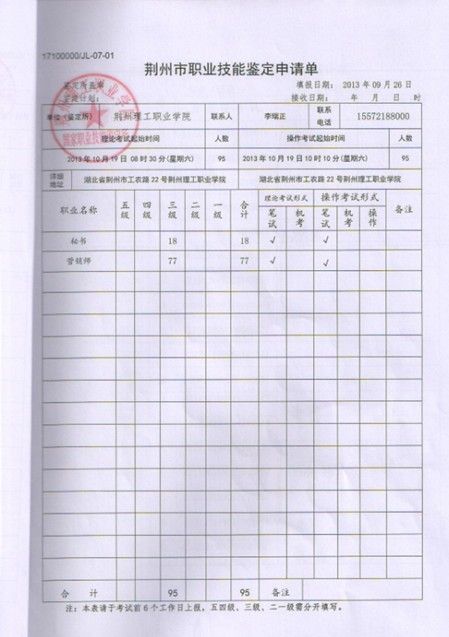 荆州市职业技能鉴定中心定于2013年10月19日进行营销师和秘书鉴定考试。