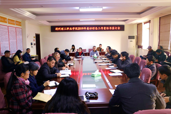 最后,党委书记、校长别业舫与各学院、各部门主要负责人签订了《荆州理工职业学院2019年度社会治安综合治理(平安建设)及消防安全工作目标管理责任书》。