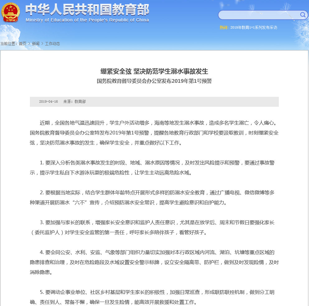 【教育部】绷紧安全弦 坚决防范学生溺水事故发生