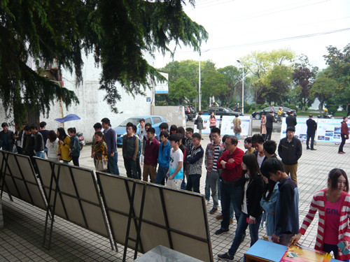 学院学生看宣传展