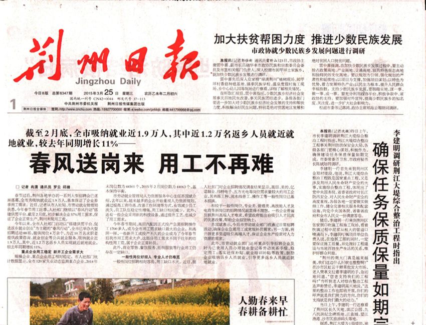 李建明要求全市以创新为先,充分释放新活力。要在推进自主创新上下功夫,发挥企业创新主体作用,支持企业在高新技术、节能减排、循环经济、生态保护等重点领域,加强先进技术引进和消化吸收再创新。引导企业依靠创新推动产品升级,不断提高"荆州制造"在细分市场的竞争力。