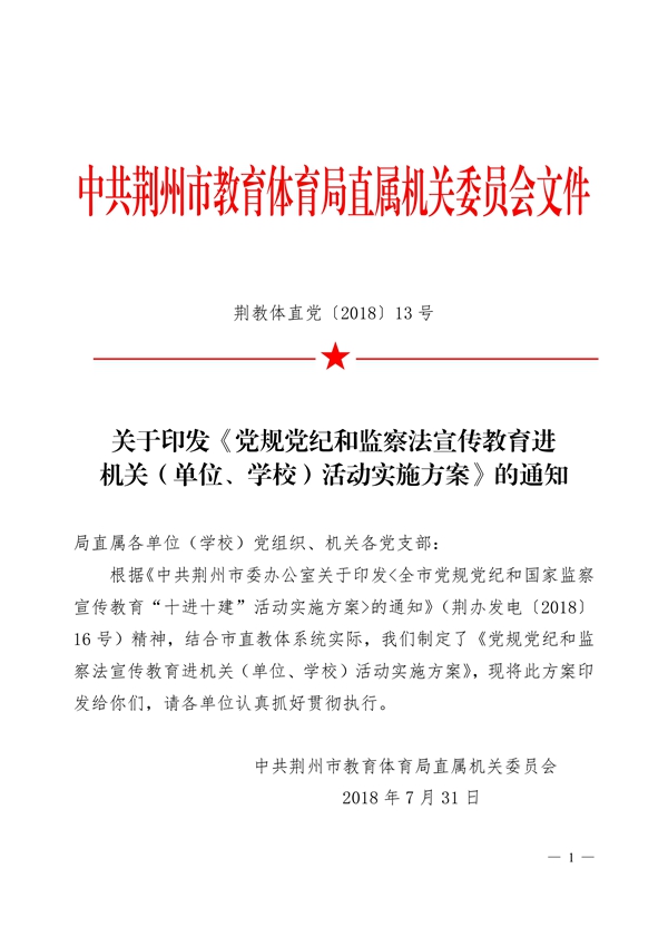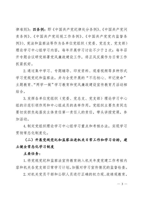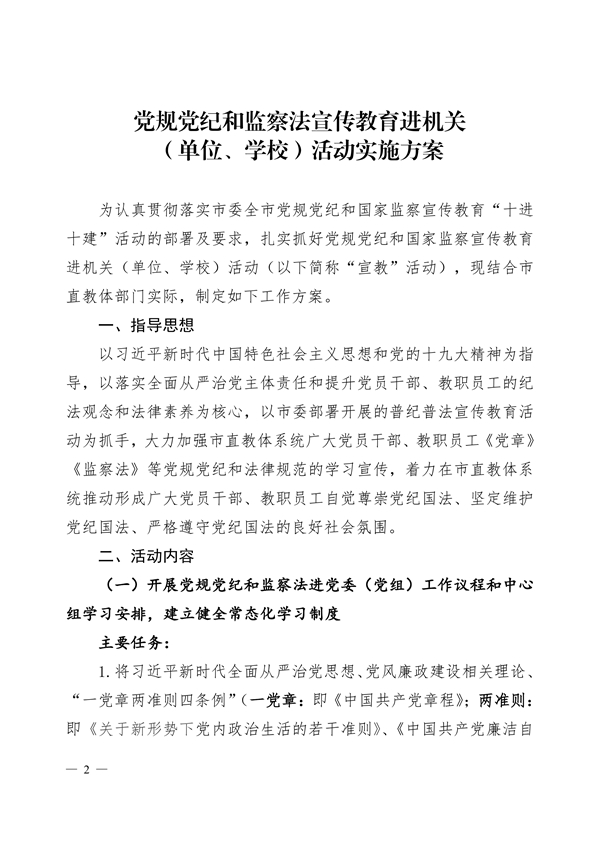 关于印发《党规党纪和监察法宣传教育进 机关(单位、学校)活动实施方案》的通知