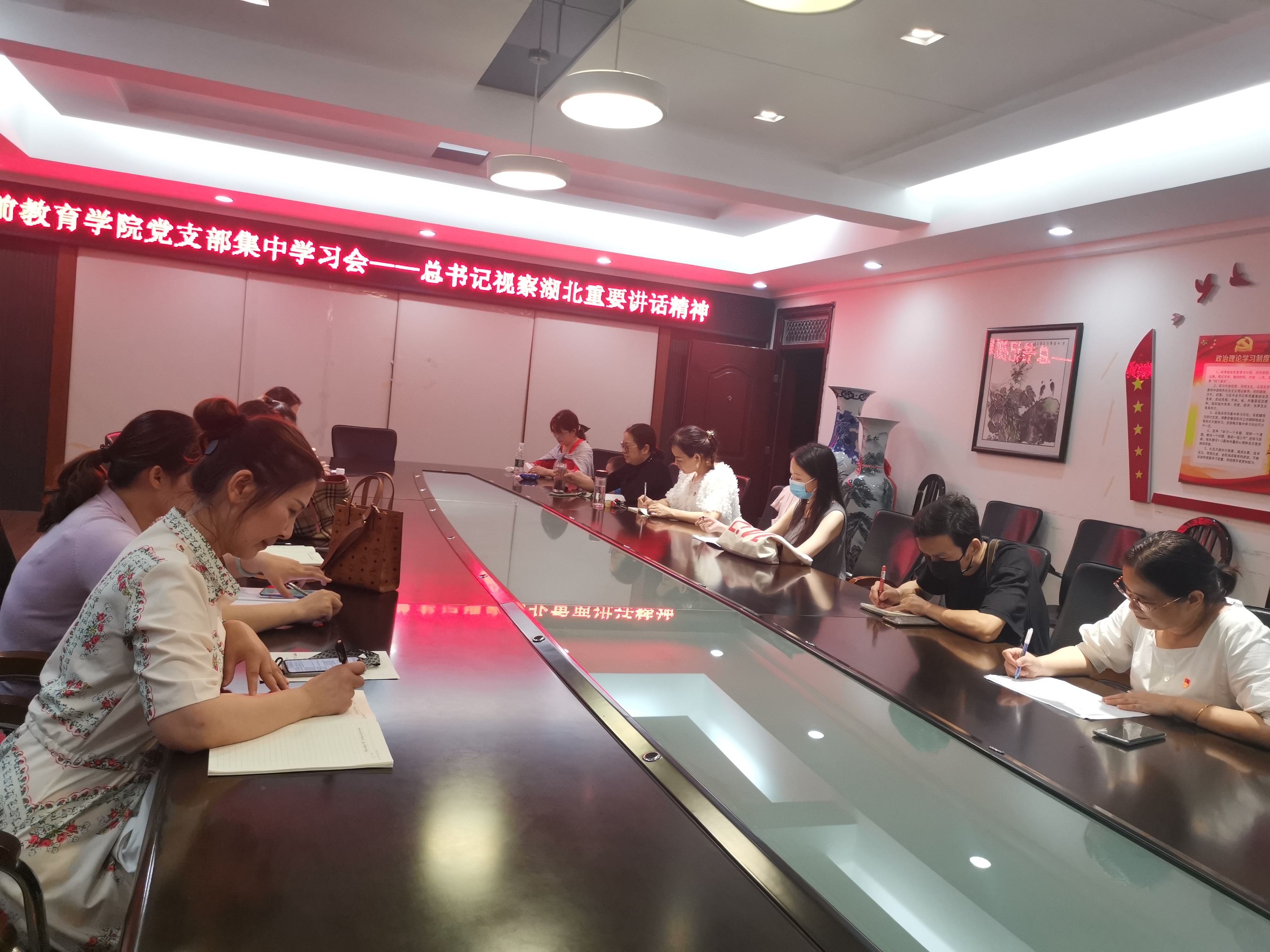 9月2日晚上7点,学前教育学院党支部在艺307会议室开展了学习习近平总书记视察湖北重要讲话精神,集中学习由学前教育学院党支部书记曹小妹同志主持,潘贤君、方帆、张晶、姬晓露、郑军等十四位同志出席。