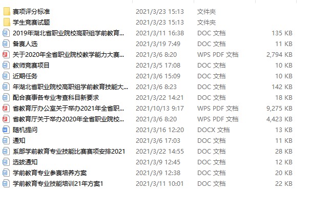 学前教育专业办学历史悠久,为国家和社会培养了成千上万的学前幼教人才。从2005年至今,本着以赛促学,以赛促练,以赛促教的办学办赛理念,我们十几年如一日,紧贴职业能力要求,紧贴师范性质,于每年五月开展学前教育技术职业技能大赛。经过大赛的锤炼,大大提升了学生职业技能水平和教师任教水平。在往届的省赛和国赛中,有很多不俗的表现。今年两校合并以后,学院更加重视职业技能大赛这项工作。于2021年春季学期,认真剖析国赛省赛文件,掌握行业风向标。将国赛省赛的赛项与培养方案相结合,做到岗课赛证目标在培养方案中的大融合。以下为我院整理出来的国赛省赛文件,和近期出台的学院培养计划和方案。