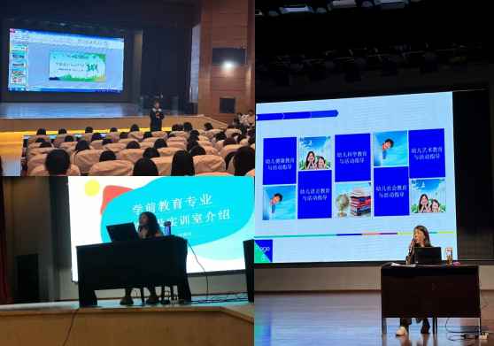 我院院长方帆带来了《学前教育专业教育》讲座,让同学们对学前教育专业有了初步认识。师范教育理论教研室主任王丹对学前专业理论课进行介绍,专业技能教研室主任徐雅欣对学前专业技能课及实训室进行介绍,让同学们对学前教育专业课程体系有所了解,对自己的专业规划及发展有了初步的设想。