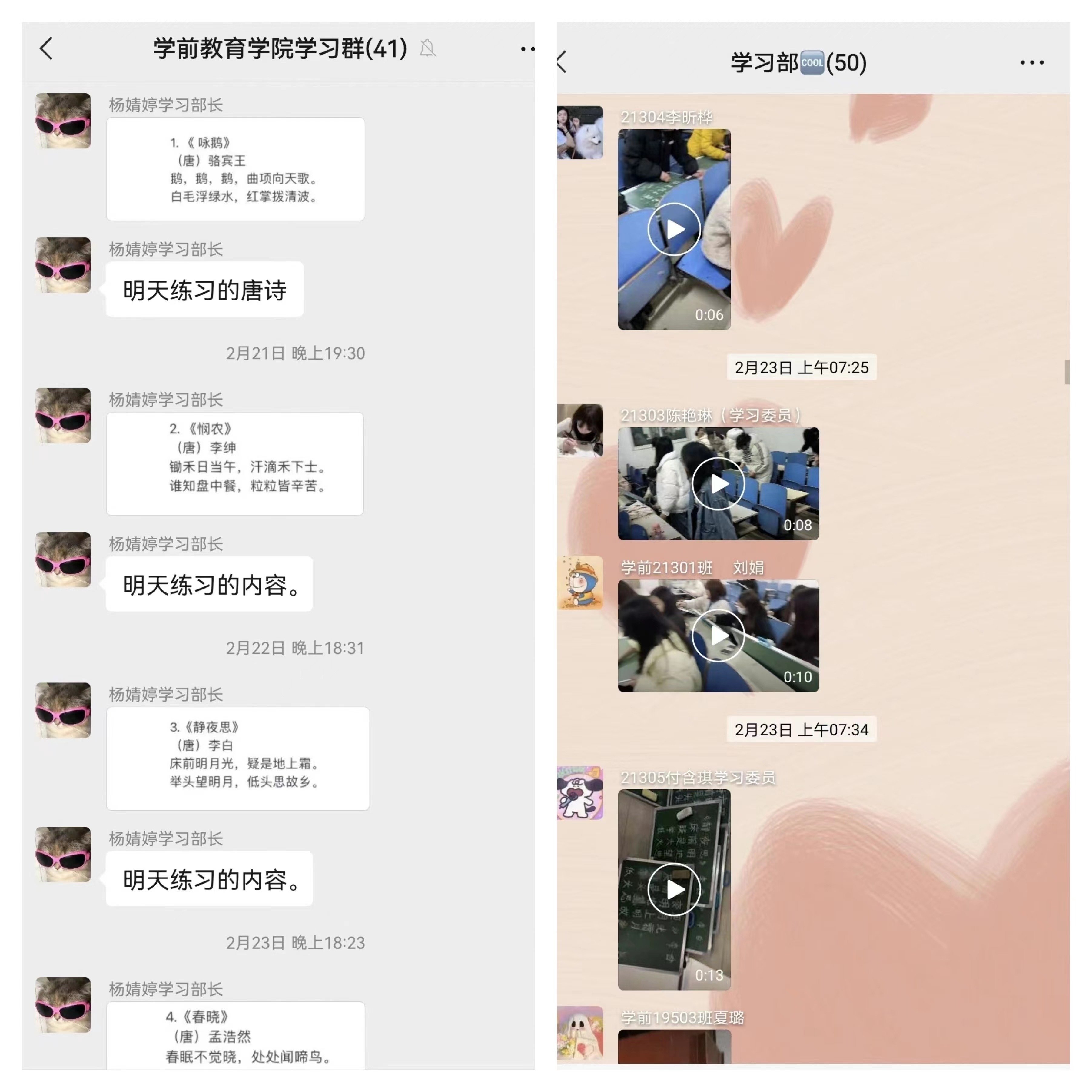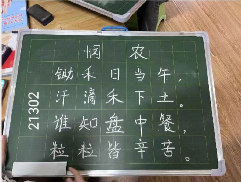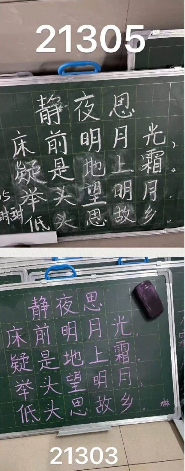 院学生会学习部统一安排每天练习的内容并发至学习群,各班级利用每天早自习前十分钟进行练习,写完放在教室外面排列好,各班学习委员拍小视频发到学习委员群里,学习部留存存档。另外学习部早自习也会安排专人进行检查,对书写规范、结构合理、布局美观的小黑板拍照留存。每个月学习部会评比一个优秀组织班级,三到五个优秀个人。