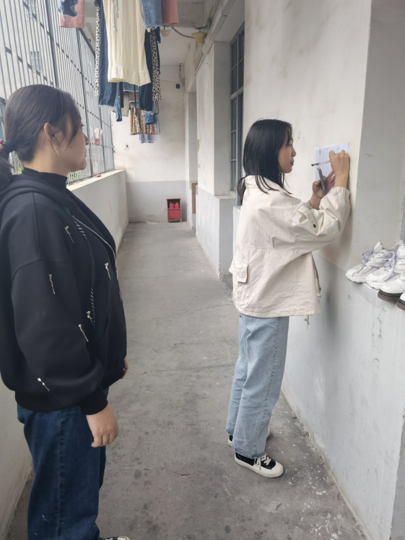 检查分为四组同时展开,主要为女生寝室,各个宿舍通风良好,空气清新,给我们留下来一个非常好的印象。在检查过程中,我们重点对宿舍卫生、用电安全以及安全通道诸多方面进行了检查,对发现的问题现场提出并予以整改。寝室主要问题是寝室门口有垃圾,特别是高层寝室,寝室门外摆放衣架,晾衣服,堵住了过路,寝室内卫生摆放脏乱差。