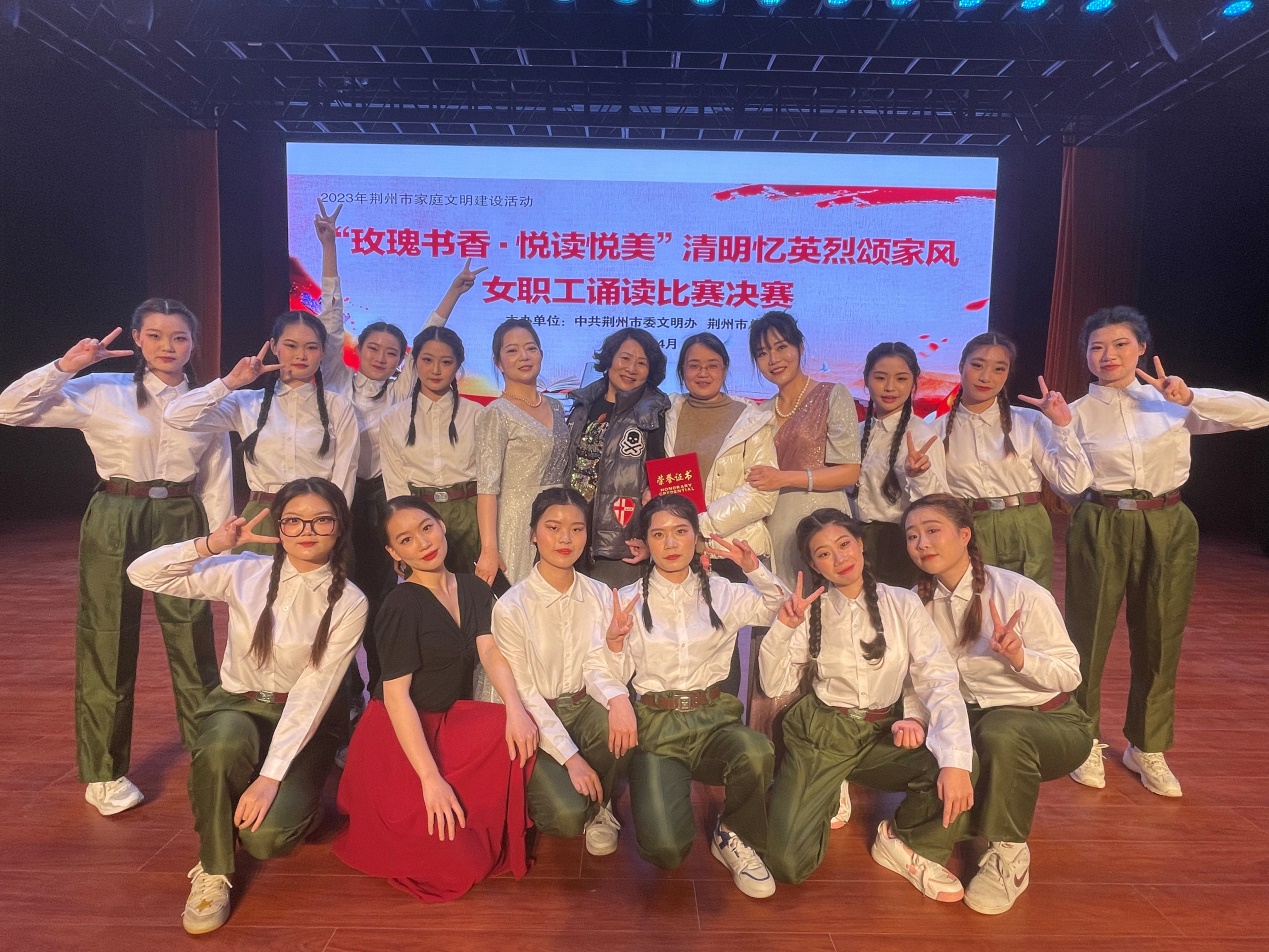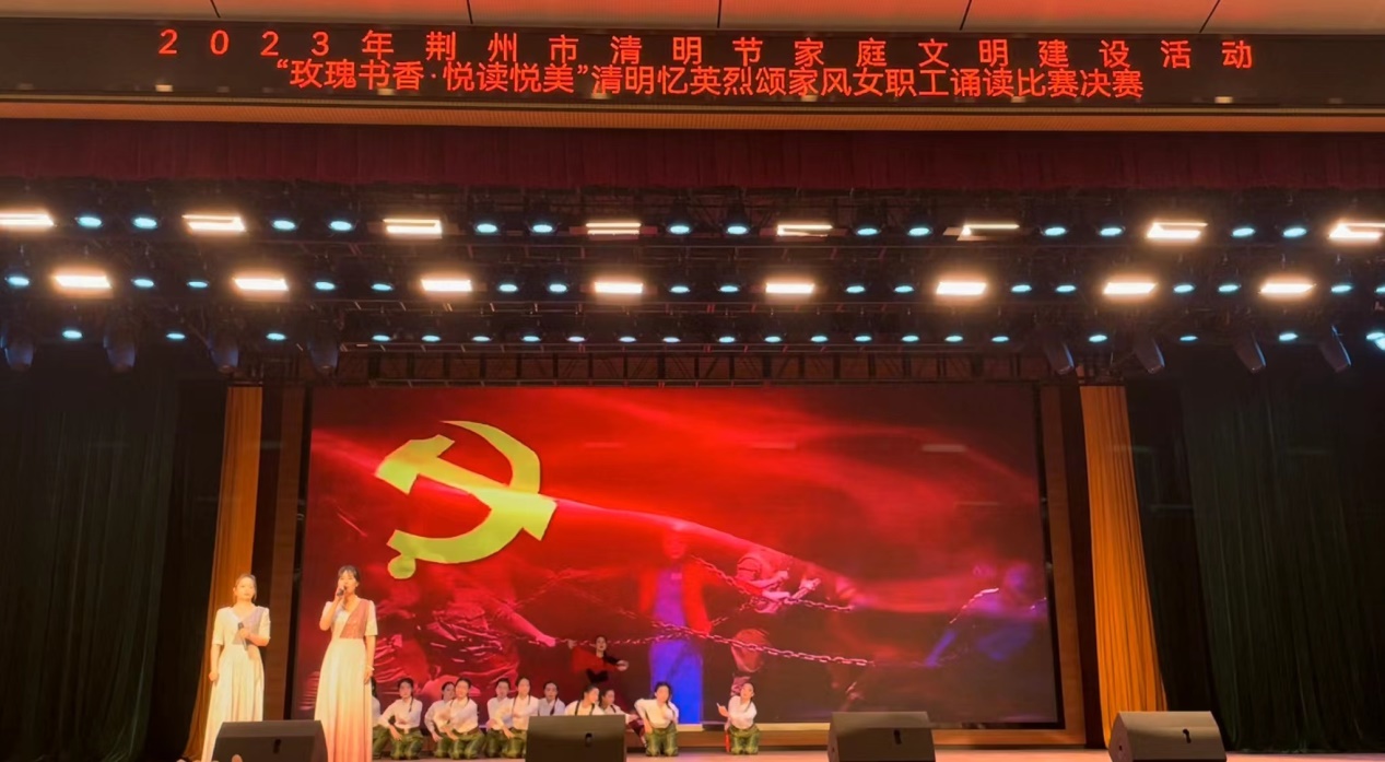 2023年4月4日下午14:00,2023年荆州市清明节家庭文明建设活动"玫瑰书香·悦读悦美"清明忆英烈颂家风女职工诵读比赛决赛在荆州文化宫举行。学前教育学院代表荆州理工职业学院参加了此次比赛。