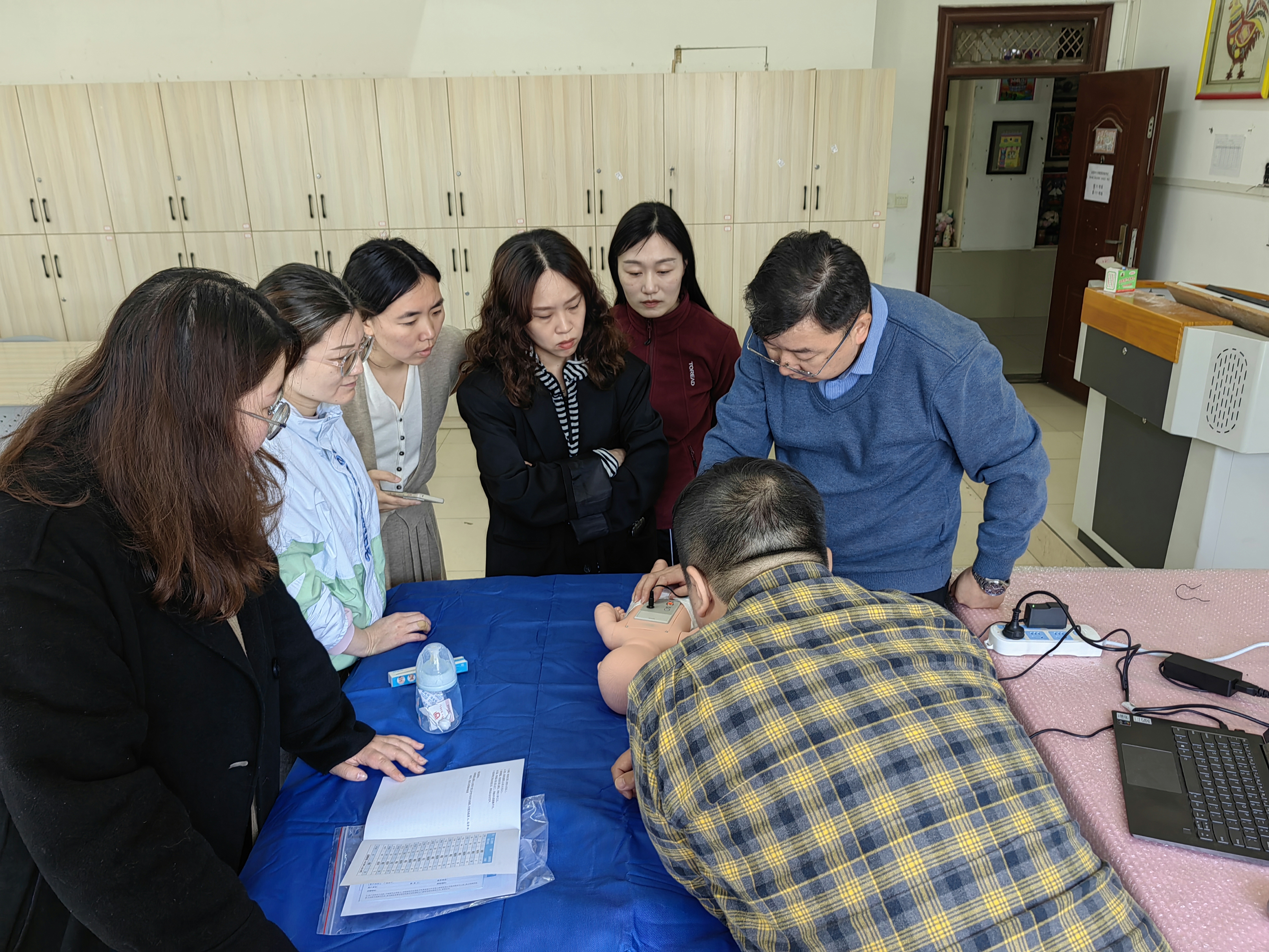 培训活动在学前教育学院院长方帆、副院长庞芮的主持下,由来自上海知能医学模型设备制造有限公司朱文武工程师对教师进行了使用培训,培训内容主要围绕全功能急救模拟娃娃、高智能婴儿仿真娃娃、儿童急救模拟仿真娃娃、儿童全功能护理模拟娃娃、高级中屏幕液晶自动电脑心肺复苏模拟人展开,对实训室的硬件设备及操作方法进行了演示说明。参与培训的老师也提出了使用中存在了问题与困惑,表现出极高的热情。