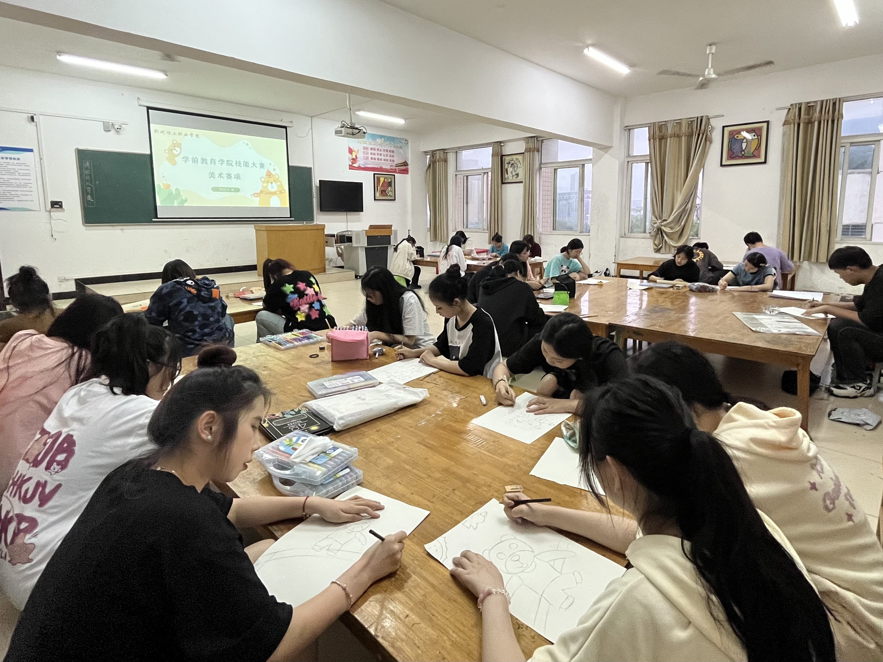 参赛选手在学院的指导下,赛前精心准备,认真对待,赛中从容完成各项比赛环节。选手们故事讲述绘声绘色、富有感染力;幼儿歌曲表演唱活泼有趣、歌声飞扬;活动设计结构严谨、层次清晰;说课条理清晰,表达流畅;舞蹈竞赛舞姿优美;绘画作品造型生动,富有美感,展现出我院学前教育专业风采。