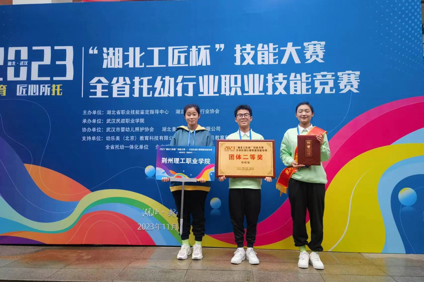 2023年11月5日,2023 年"湖北工匠杯"技能大赛——全省托幼行业职业技能竞赛总决赛在武汉民政职业学院举行。学前教育学院学生金美希、车天才、郭梦圆参加了此次比赛。